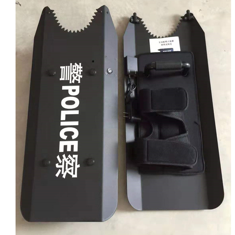 盾体采用2.0mm厚合金板制成,背面有握把和臂带