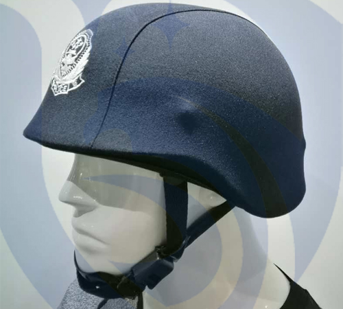 防弹头盔符合GA293-2012警用防弹头盔及面罩》标准规定的2级防护要求(能阻挡547.62mm手枪发射的517.62mm手枪铅心弹的穿透),头盔由盔壳及悬挂缓冲系统组成,盔壳由7.0mm芳纶机织布制成。盔壳外表面颜色为“99”式警服藏蓝色。头盔配有头套,头套颜色为藏蓝色,头套前方刺绣警徽标识。重量≤1.5 kg