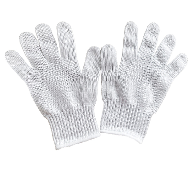 防割手套符合《GA614-2006警用防割手套》标准,主要采用超高分子量聚乙烯纤维包覆不锈钢丝的包芯纱织成。防割手套的颜色为白色,重量不大于100g。